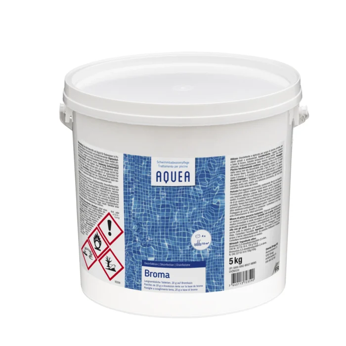 Dosierung: Schwimmbad laufender Betrieb: So viel zugeben, dass am Beckenauslauf mind. 1,0 mg / l freies Brom  nachzuweisen ist. Je nach Menge und Art der bromzehrenden Faktoren sind 3 – 4 Tabletten / 10 m³ ausreichend für 5 – 10 Tage.
