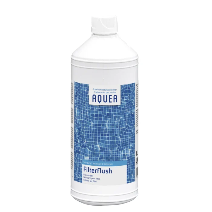 Dosierung: 200 – 300 ml AQUEA Filterflush in den Skimmer giessen.