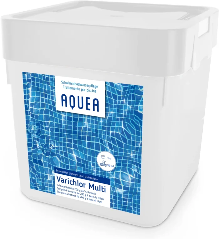 Die innovative 2-Phasen-Tablette für Schwimmbäder bietet eine effiziente Lösung für die Poolpflege durch modernste Fertigungstechnik. Die erste Phase nutzt schnelllösliches Chlor, das sich zügig im Wasser auflöst. Diese Reaktion ermöglicht eine schnelle Desinfektion, beseitigt Bakterien und Verunreinigungen, und bietet sofortigen Schutz für Ihr Schwimmbadwasser. In der zweiten Phase setzt Varichlor Multi auf kontrollierte Freisetzung von langsamlöslichem Chlor, kombiniert mit hochwirksamem Flockungsmittel. Dieser Prozess entfernt Schwebstoffe, Trübungen und gewährleistet langfristige Desinfektion des Wassers.