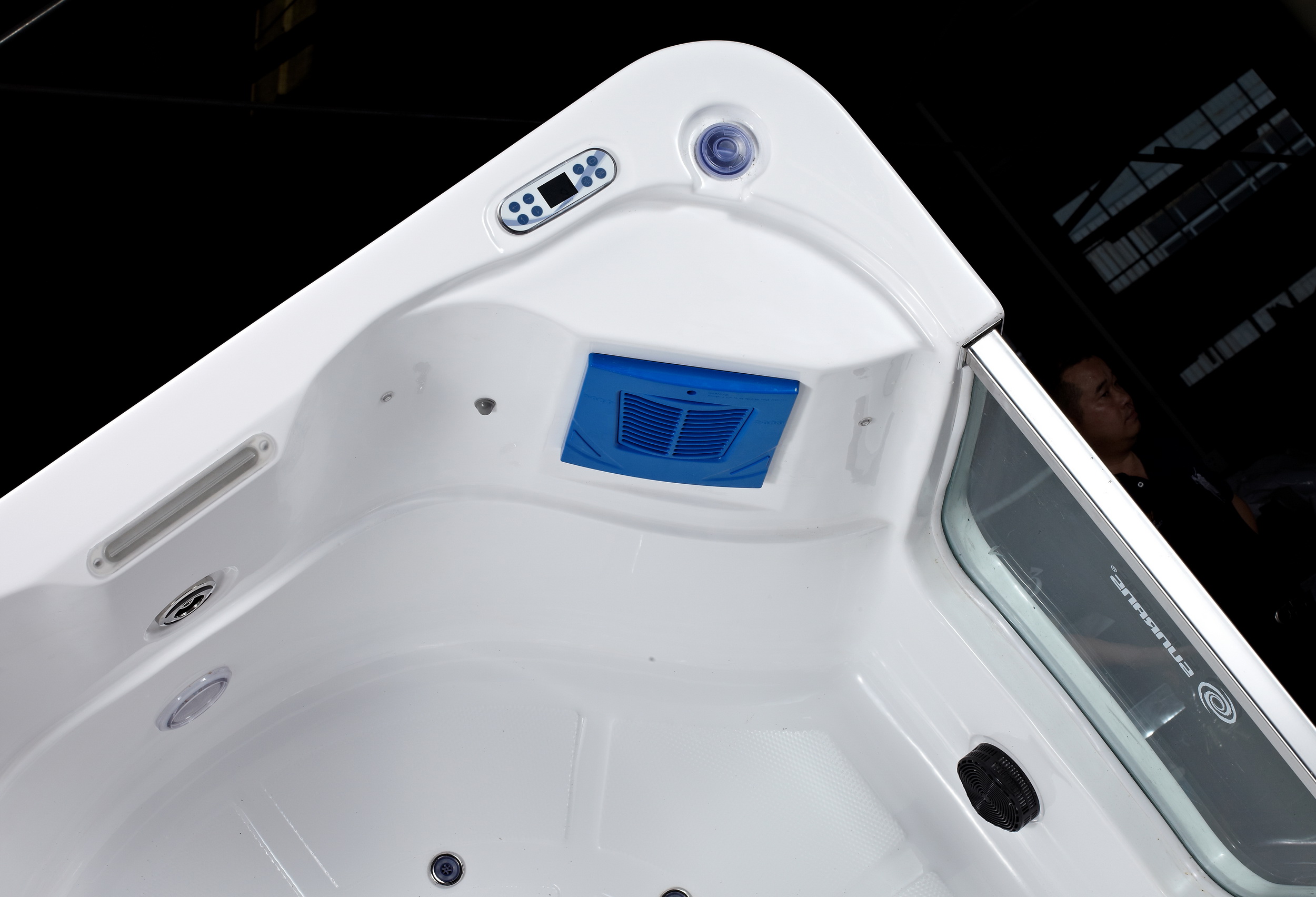 Der AquaNest Baby Pool verfügt über 1 Massagepumpe 1PS, 1 Zirkulationspumpe, 1 Air Blower, 5 Hydro-Jets, 3kW-Heizung und Balboa-Steuerung.