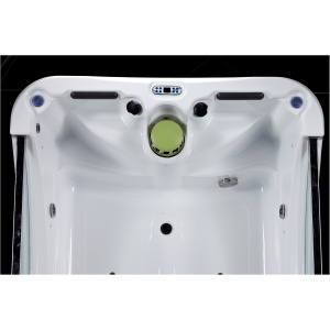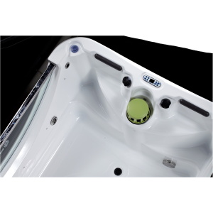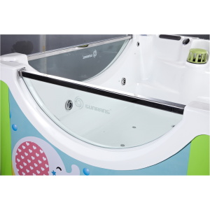 Der BubbleBay Baby Pool verfügt über 1 Massagepumpe 2PS, 1 Air Blower, 1 Zirkulationspumpe, 4 Hydro-Jets und einer 3kW Heizung.