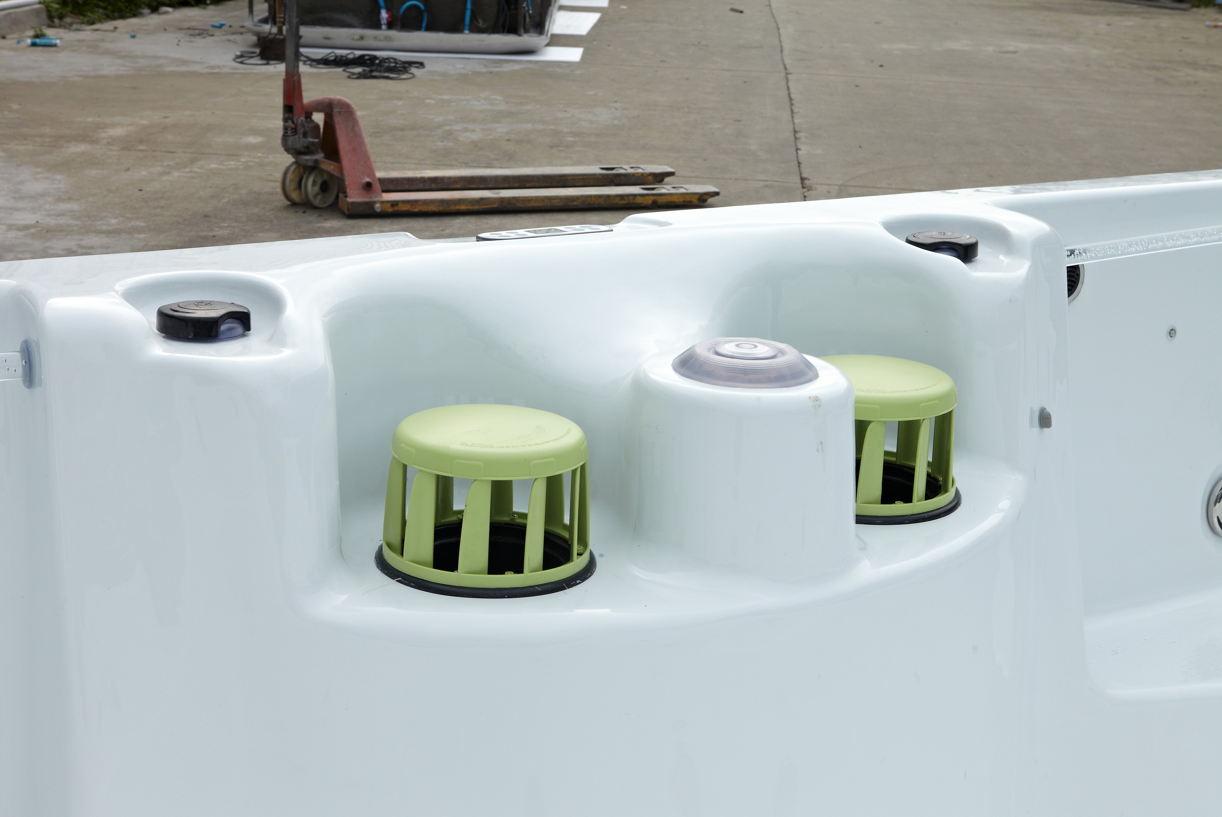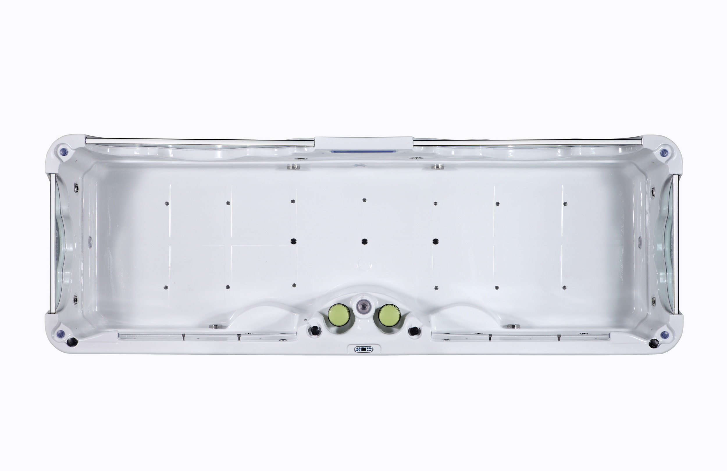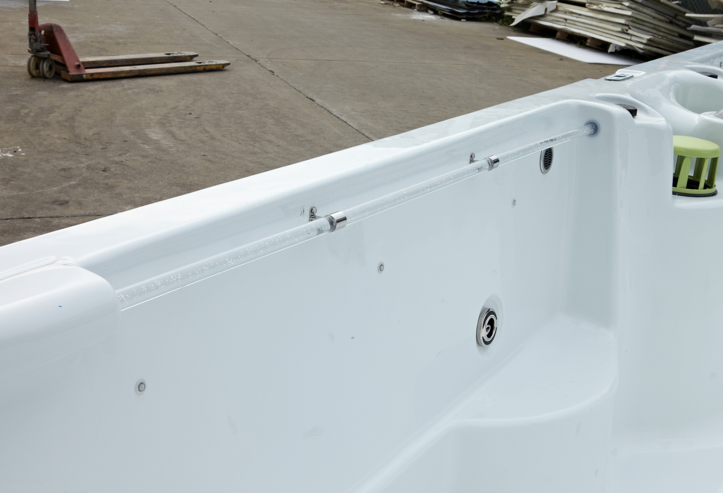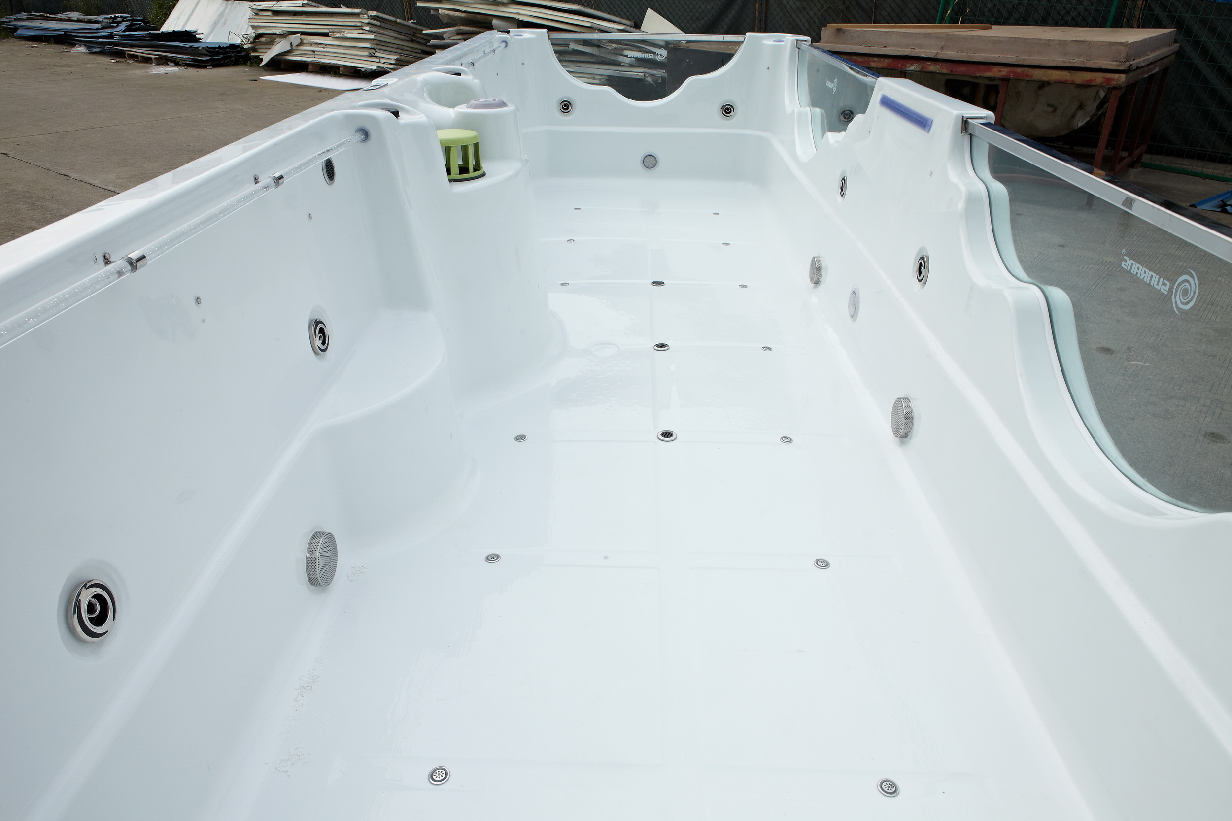 Der SunnySprout Baby Swim Spa verfügt über 1 Massagepumpe 1PS, 1 Zirkulationspumpe, 1 Air Blower, 10 Hydro-Jets, 3kW-Heizung und Balboa-Steuerung.