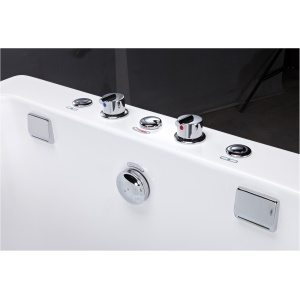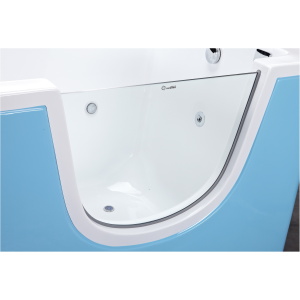 Der AquaCuddle Baby Spa verfügt über einen kalt-/warm-Wasser Anschluss, 4 Luftdüsen und 1 Massage-Jet. Standardmässig ist die Handbrause bei uns mitinstalliert. Auffällig ist die Grösse sowie das eine Sichtglas auf der Voderseite!