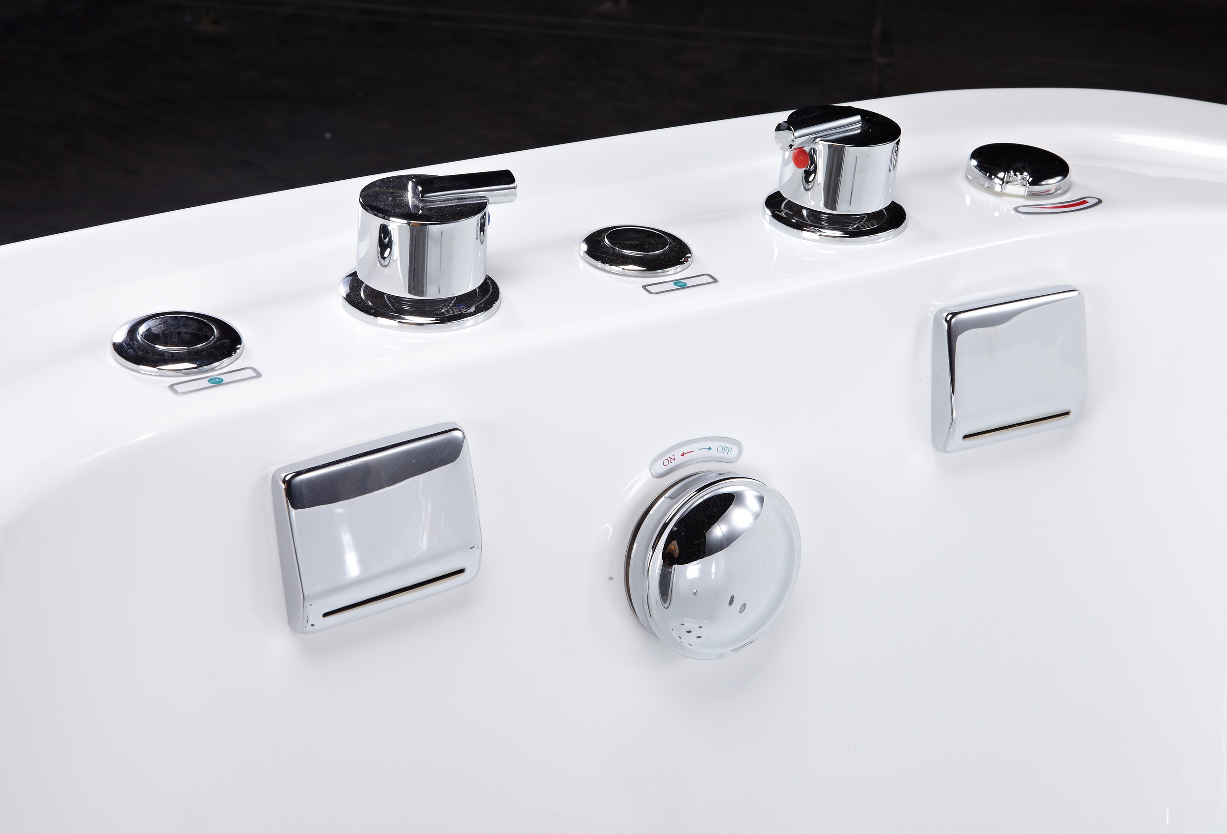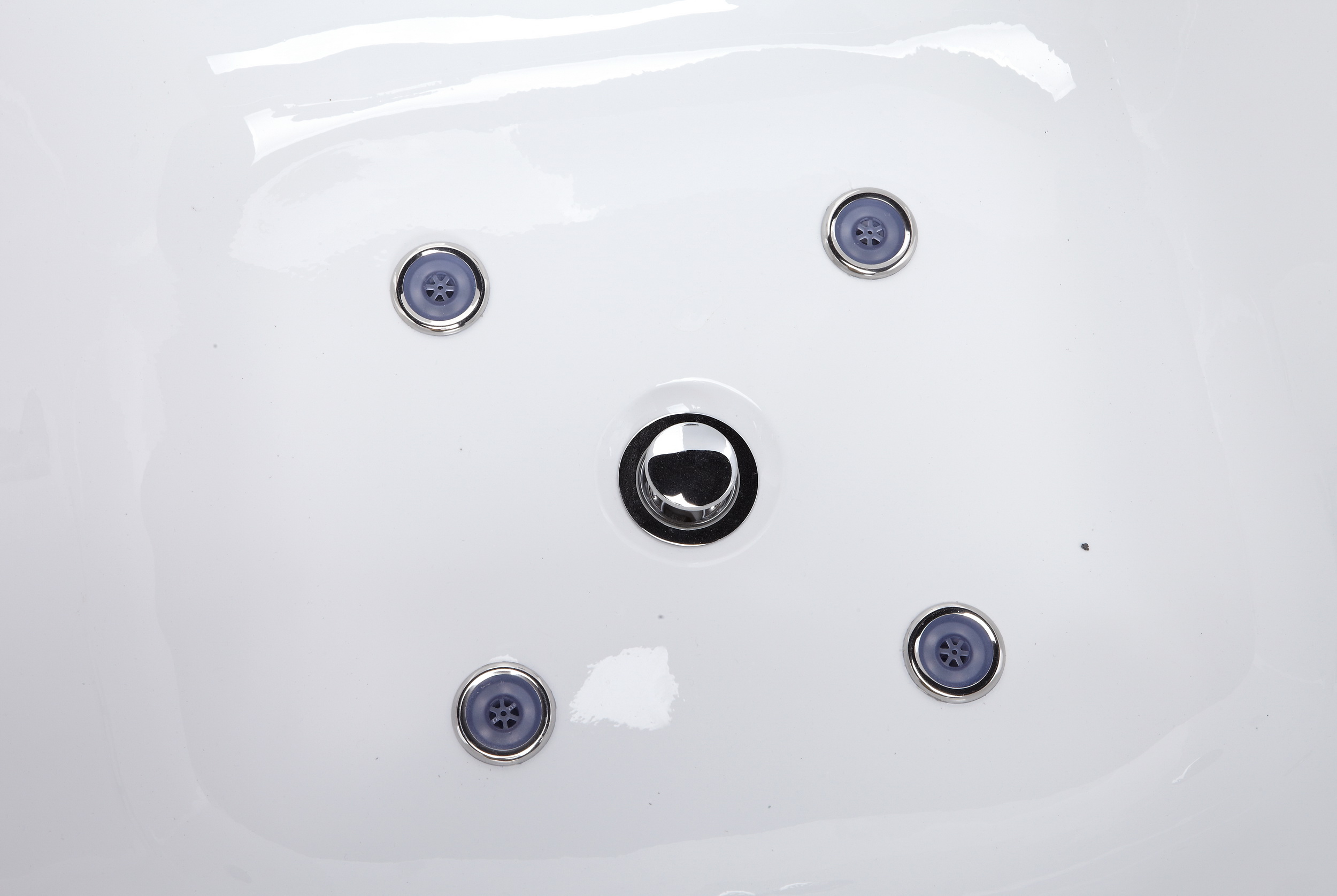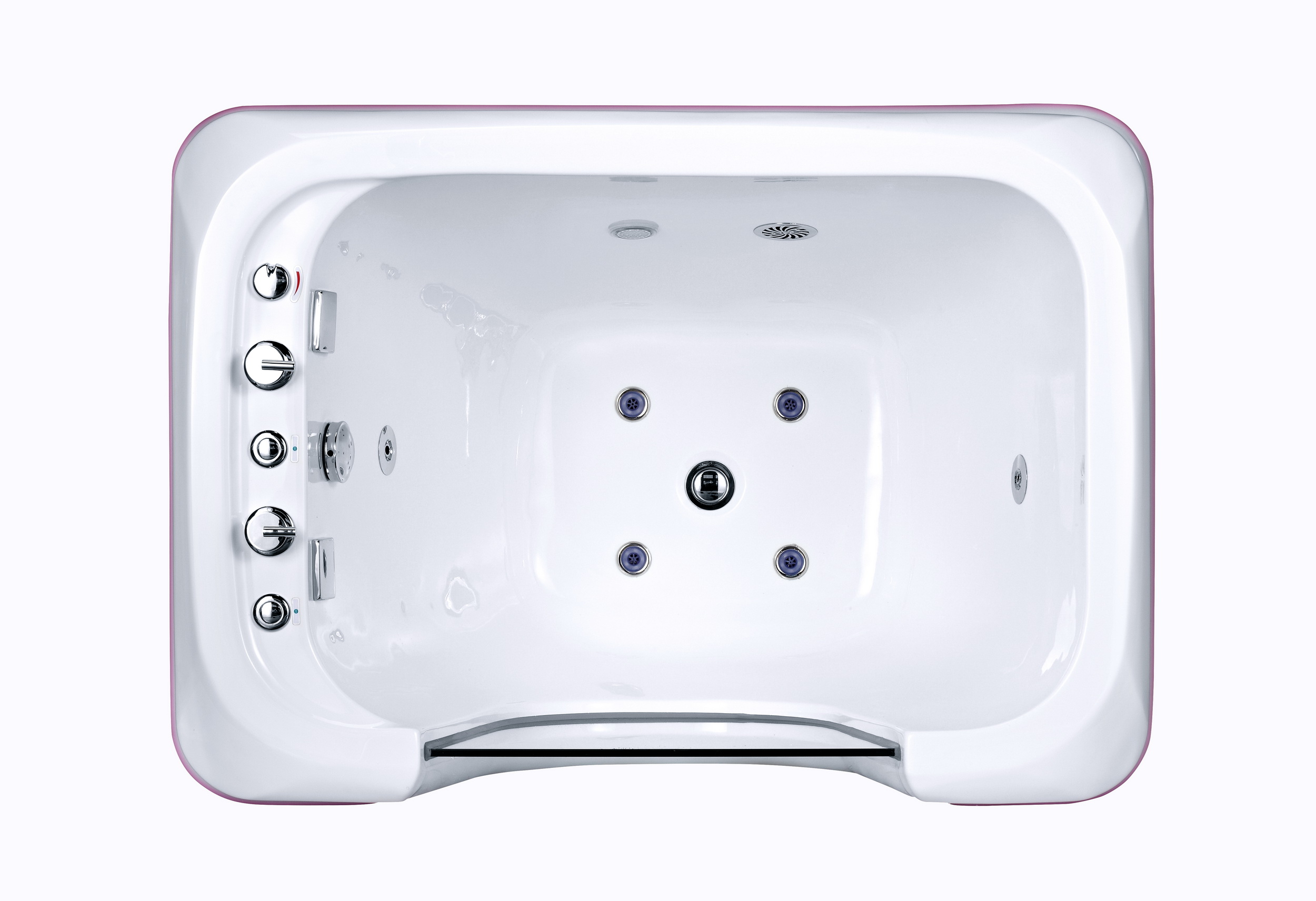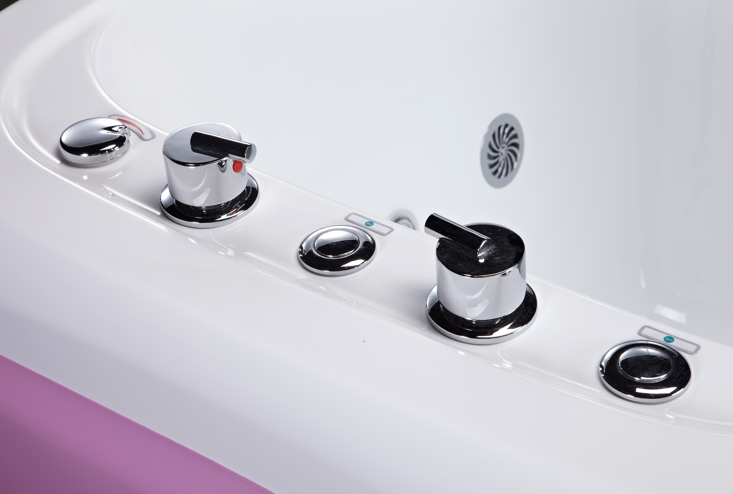 Der MiniBliss Baby Spa verfügt über einen kalt-/warm-Wasser Anschluss, 4 Luftdüsen und 1 Massage-Jet. Standardmässig ist die Handbrause bei uns mitinstalliert. Auffällig istdas eine Sichtglas auf der Vorderseite!