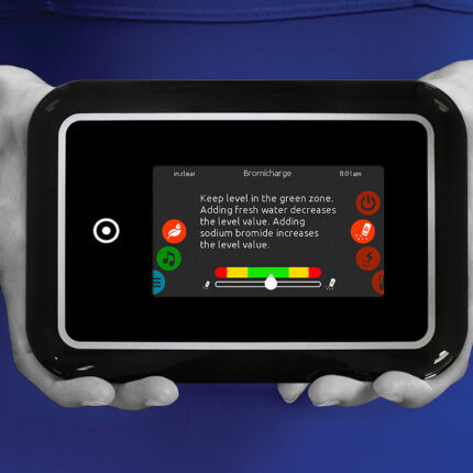 in.clear ist einfach zu installieren und zu verwenden: Programmieren Sie Ihre persönlichen Einstellungen und stellen Sie die Bromsalz-Konzentration direkt auf dem Bedienpanel ein. Geben Sie dann einfach die benötigte Menge Bromsalz, BromiCharge, ins Wasser. Das Salzwasser zirkuliert dann durch die Zelle des in.clear-Bromgenerators, einer Niederspannungsquelle, die das Salz in freies Brom umwandelt.