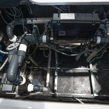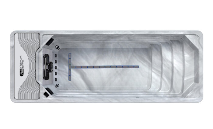 Alle Komponenten – inklusive leistungsstarker Gegenstromanlage – sind direkt im Pool integriert