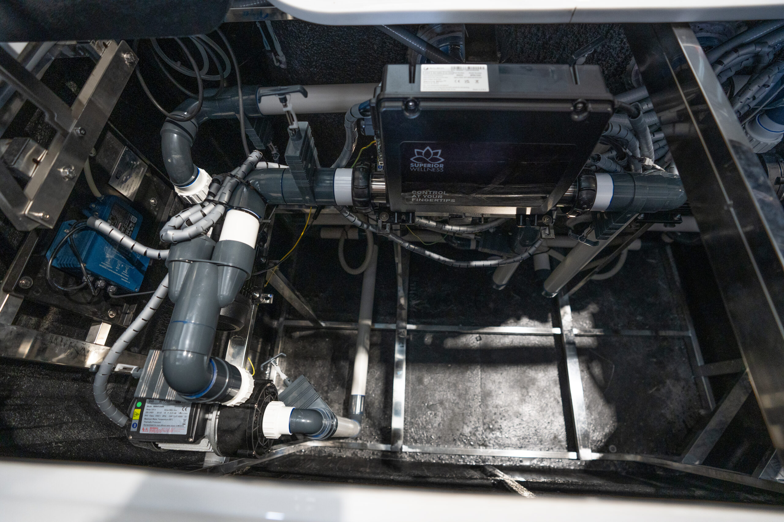 Alle Komponenten – inklusive leistungsstarker Gegenstromanlage – sind direkt im Pool integriert